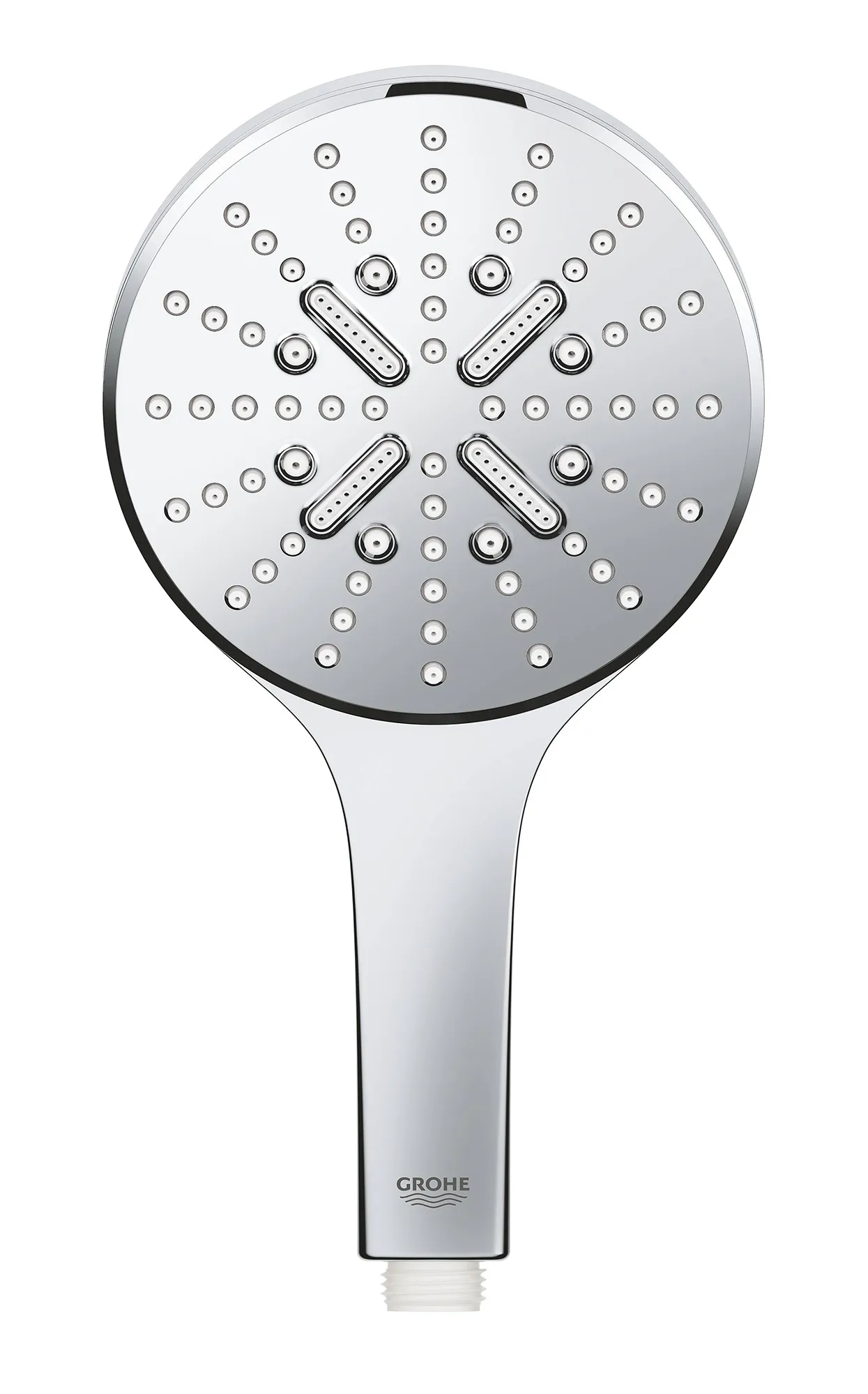 GROHE DreamSpray превосходный поток воды. GROHE SmartTip выбор режима струи одним нажатием пальца (на кольцо круглой кнопки). GROHE RainStart - ручной душ всегда начинает работу с режима Rain. GROHE StarLight хромированная поверхность