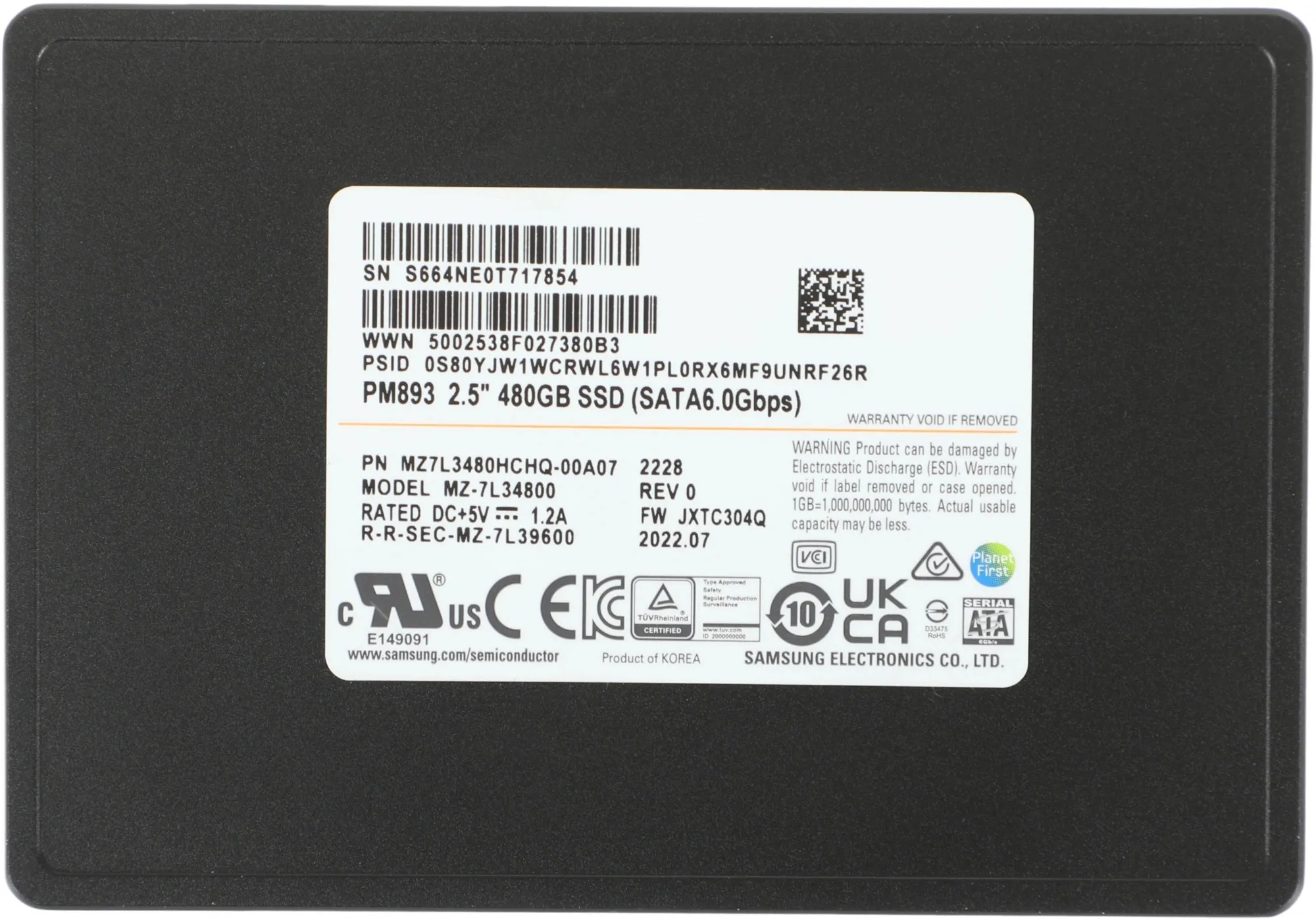 Описание товара Накопитель SSD Samsung PM893 480GB (MZ7L3480HCHQ-00A07)