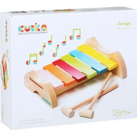 Игрушка от бренда CUBIKA Ксилофон LKS-2 несомненно понравитсявашему ребенку. Она выполнена из качественных материалов, окрашена в яркие цвета с помощью совершенно безвредных для здоровья красителей. Развивает творческое мышление и фантазию малыша. В отличии от многих детских ксилофонов, которые имеют металлические пластины, ксилофон Cubika полностью сделан из дерева. Звуки, извлекаемые, из деревянных брусков ксилофона мягче и приятнее для детского (да и для взрослого) слуха. Музыкальный инструмент имеет 6 нот и два деревянных молоточка, которыми очень весело стучать по разноцветным клавишам. Игра на ксилофоне развивает не только музыкальный слух, а еще и моторику, координацию движений, умение «слушать и слышать» звуки вокруг себя.