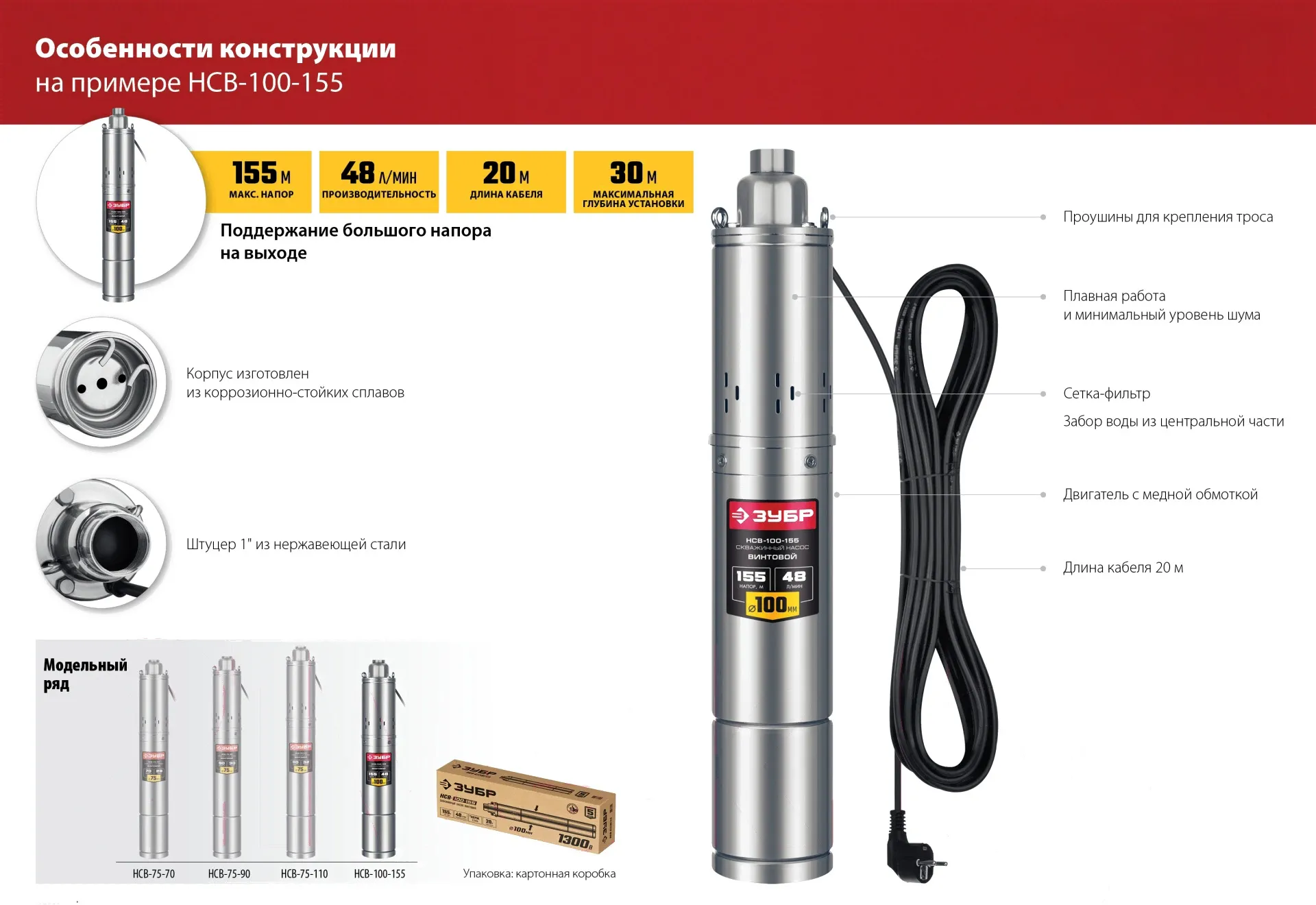 Описание товара Скважинный насос винтовой ЗУБР, 70 м напор