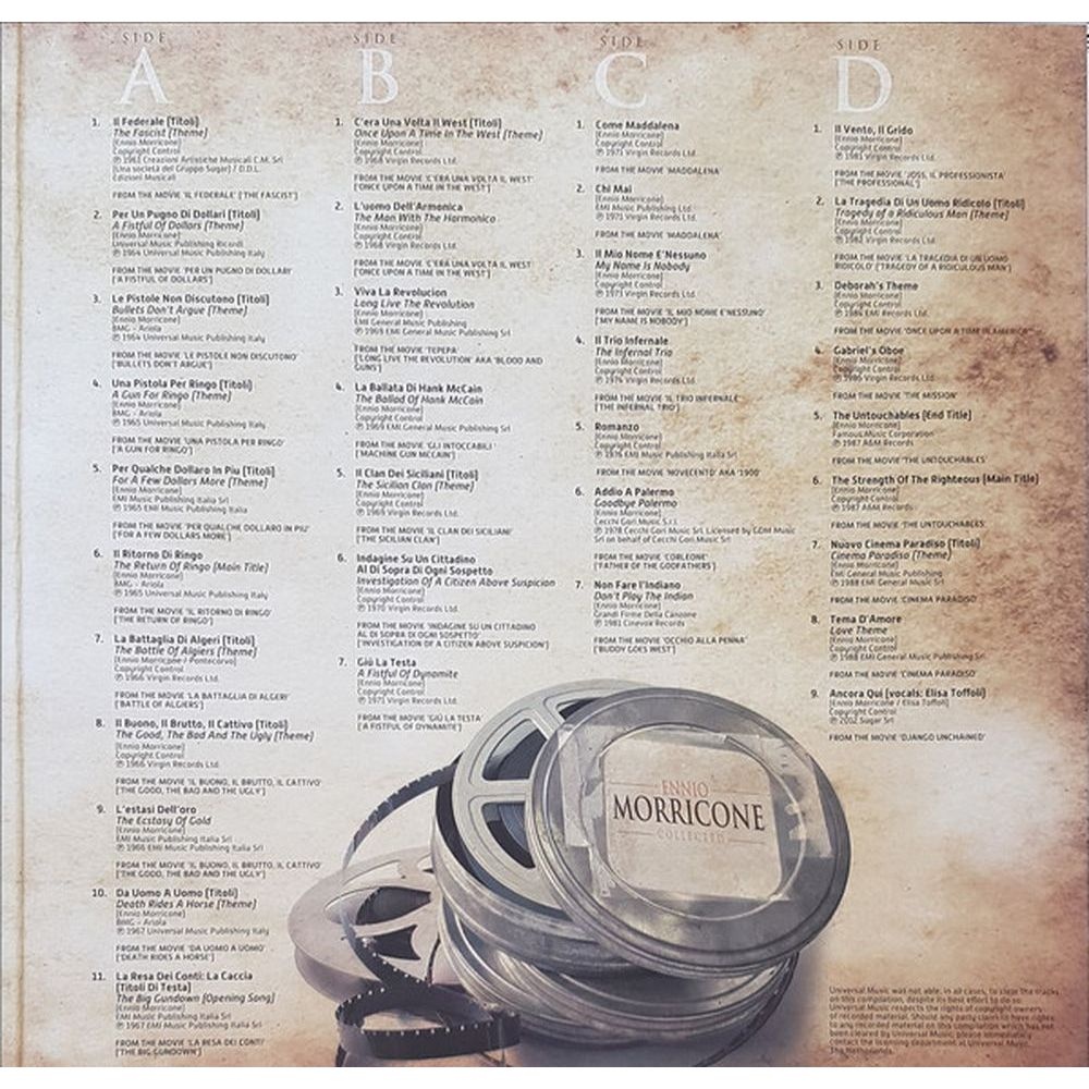 Лицензионное издание, выпущенное на виниле. В альбом вошли следующие композиции: The Fascist (Theme), A Fistful Of Dollars (Theme), Bullets Don’t Argue (Theme), A Gun For Ringo (Theme), For A Few Dollars More (Theme), The Return Of Ringo (Main Title), The Battle Of Algiers (Theme), The Good, The Bad And The Ugly (Theme), The Ecstasy Of Gold, Death Rides A Horse (Theme), The Big Gundown (Opening Song), Once Upon A Time In The West (Theme), The Man With The Harmonica, Long Live The Revolution, The Ballad Of Hank McCain, The Sicilian Clan (Theme), Investigation Of A Citizen Above Suspicion, A Fistful Of Dynamite, Come Maddalena, Chi Mai, My Name Is Nobody, The Infernal Trio, Romanzo, Goodbye Palermo, Don’t Play The Indian, Il Vento, Il Grido, Tragedy Of A Ridiculous Man, Deborah's Theme, Gabriel's Oboe, The Untouchables (End Title), The Strength Of The Righteous (Main Title), Cinema Paradiso (Theme), Love Theme, Ancora Qui