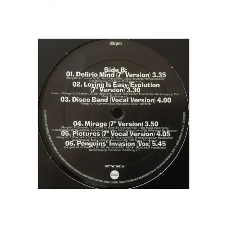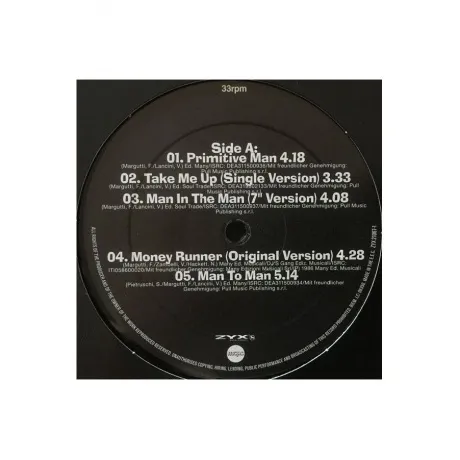 Лицензионное издание, выпущенное на виниле. В альбом вошли следующие композиции: Primitive Man, Take Me Up (Single Version), Man In The Man (7" Version), Money Runner (Original Version), Man To Man, Delirio Mind (7" Vocal Version), Loving Is Easy / Evolution (7" Version), Disco Band (Vocal Version), Mirage (7" Version), Pictures (7" Vocal Version), Penguins' Invasion (Vox)