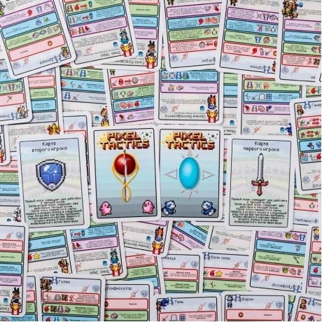 Пиксельные сражения продолжаются! Готовы к новому раундуx. Пиксель Тактикс 3 — это самостоятельное настольное сражение из серии пиксельных карточных игр Pixel Tactics. В ходе этой настольной игры для детей и взрослых вам, как и прежде, предстоит возглавить небольшую армию из разнообразных героев и выбрать полководца, что поведет их в бой. В этой коробочке вы не только найдете 25 совершенно новых персонажей, но еще и некоторые изменения в механике — например, вы сможете нанимать не трех, а сразу пятерых героев в ряд. Несложные правила, высокая вариативность и захватывающий игровой процесс в компактной коробке. Готовы к очередному сражениюx