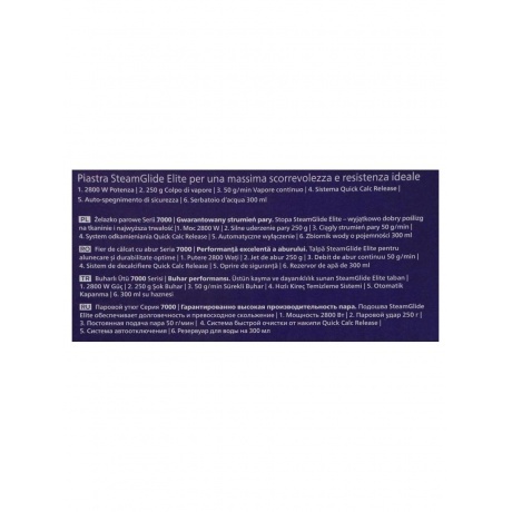 Утюг Philips DST7041/20 мощностью 2800 Вт поддерживает паровой удар со скоростью 250 г/мин, который служит для эффективного устранения заломов. Подошва SteamGlide Elite из нержавеющей стали легко скользит по любым материалам, не оставляя блестящих следов. Шнур длиной 2 м обладает шаровым креплением, не допускающим спутывания. Утюг Philips DST7041/20 оборудован регулятором для выбора температуры в пределах от 75 до 205°C. Функция очистки защищает внутренние элементы от накипи. Режим вертикального отпаривания удаляет складки с тюля и штор. Система разбрызгивания позволяет локально увлажнить необходимые участки. Индикаторы оповещают о готовности пара и остатке воды в 0.3-литровом резервуаре.