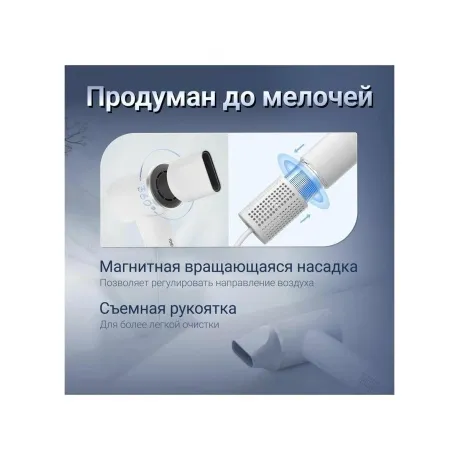 Фен Roidmi Hair dryer Miro выполнен в компактном корпусе. Небольшой вес и длинная рукоять позволяет прибору удобно ложиться в руку и позволяет без усталости высушить волосы. Для укладки модель использует насадку-концентратор. Благодаря узкому соплу она делает воздушный поток более направленным и мощным. Это позволяет быстрее высушить пряди волос, расправить их, создавая ровную прическу. При помощи этой насадки удобно делать прикорневой объем. Насадку с вращением на 360° можно устанавливать в любом положении. Roidmi Hair dryer Miro обладает мощностью 1300 Вт, создавая сильный поток воздуха для быстрой сушки. На основании рукояти выполнен съемный кожух, который задерживает волосы и пыль, не допуская их попадания в моторный блок. Он оснащен двухслойным магнитным фильтром, вынимается и очищается от мусора. Кнопки для управления температурным режимом и воздушным потоком расположены на внешней стороне рукоятки.