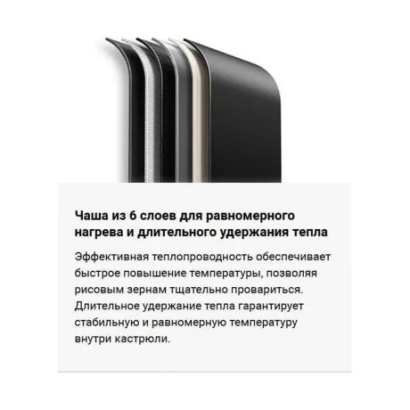 Рисоварка Xiaomi Smart Multifunctional Rice Cooker 4L оснащена 10 предустановленными режимами работы, которые позволяют выбрать оптимальный режим для разных потребностей. С помощью этой рисоварки вы сможете приготовить рассыпчатый рис всего за 30 минут. Усовершенствованный паровой клапан с шестью отверстиями предотвращает переполнение и обеспечивает равномерный выпуск пара, что облегчает контроль над процессом готовки. Чаша из шести слоёв обеспечивает равномерный нагрев и длительное удержание тепла, гарантируя стабильность и равномерность температуры внутри кастрюли. Высокая мощность нагрева 935 Вт позволяет быстро нагреть чашу и эффективно кипятить воду, благодаря чему рис получается равномерно и идеально приготовленным. Антипригарное покрытие облегчает процесс мытья чаши и предотвращает пригорание риса. Большой объём чаши в 4 литра позволяет приготовить до 16 порций риса или запечь целую небольшую курицу. Сенсорное управление и дисплей делают рисоварку простой и лёгкой в использовании, а таймер и функция поддержания тепла позволяют выставить время приготовления до 24 часов и поддерживать тепло на протяжении 12 часов. Встроенные ручки для переноски облегчают переноску и транспортировку рисоварки, а открытие крышки одним нажатием предотвращает получение ожогов от пара.