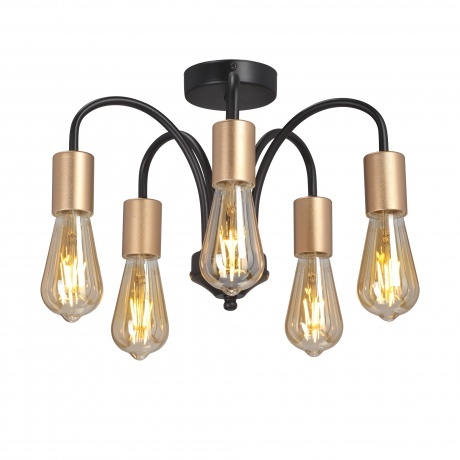 люстра потолочная vitaluce v3024-1/5pl на пять ламп под цоколь e27 в стиле лофт будет прекрасным дополнением для интерьера, оснащена металлическим основанием черного матового цвета с золотыми элементами, максимальная мощность лампы 40 вт, количество ламп 5, подходит для накаливания.