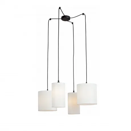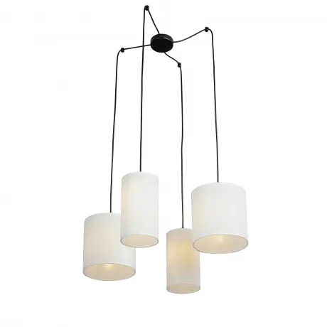 люстра v3089-1/4s от vitaluce выполнена в стиле арт-деко, подходит для различных интерьеров. конструкция включает 4 лампы с цоколем e27 (максимальная мощность каждой — 40 вт). металлический каркас чёрного цвета сочетается с текстильными плафонами белого оттенка. подвесной светильник обеспечивает равномерное освещение площади до 12 м?. общая высота достигает 123 см, диаметр — 40 см. подходит для использования в жилых и коммерческих помещениях.
