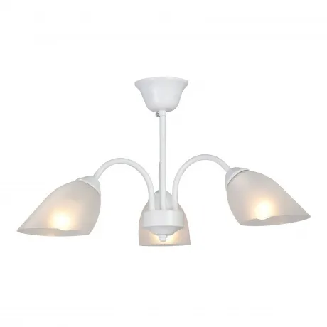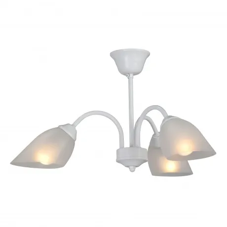 люстра vitaluce v3336-0/3pl на три лампы под цоколь e14 в оригинальном и лёгком стиле эконом, цвет арматуры белый глянцевый, максимальная мощность ламп 40 вт, материал плафона стекло, высота 28 см, ширина 55 см, вес 0.62 кг