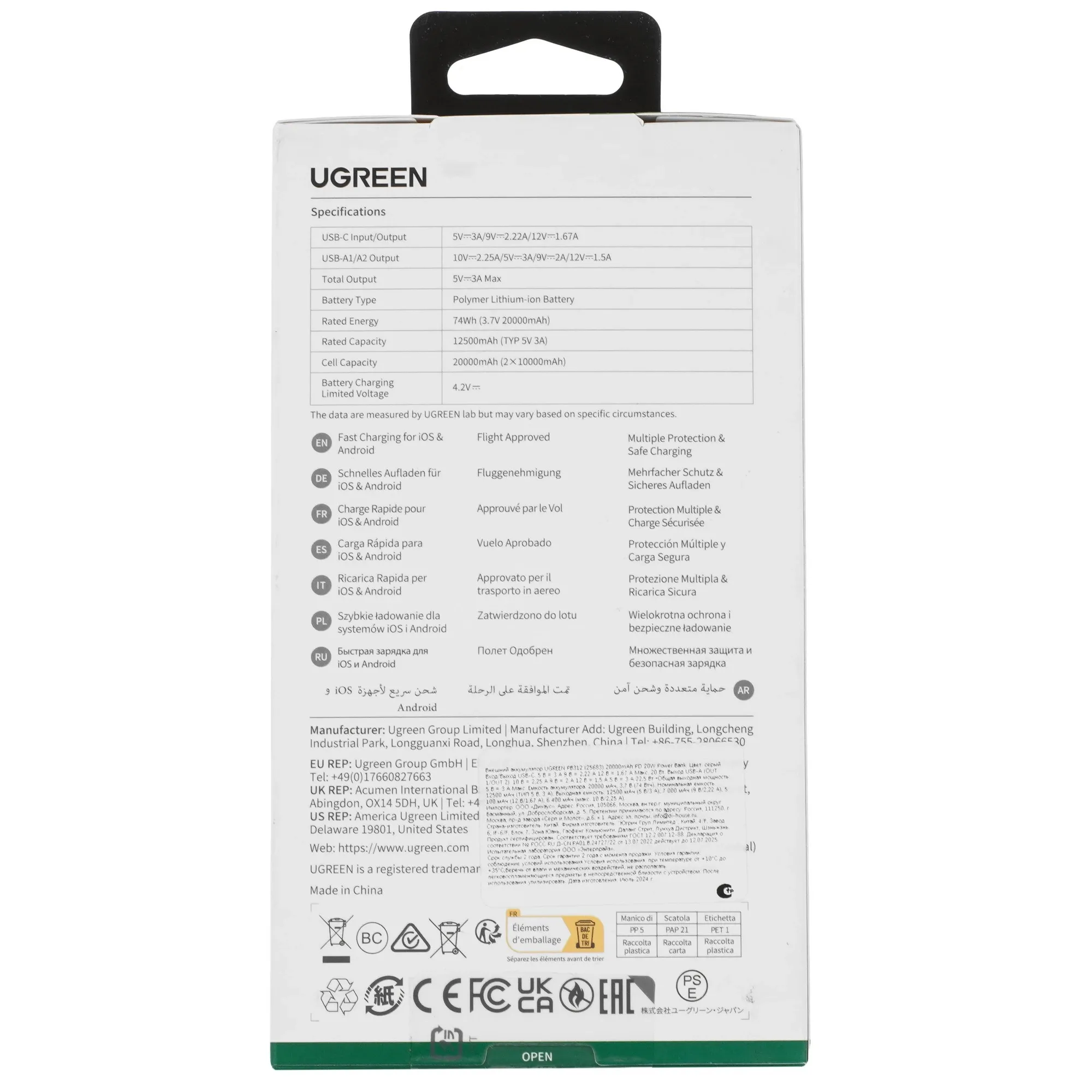 Описание товара Портативное зарядное устройство Ugreen PB312 Gray (25683)