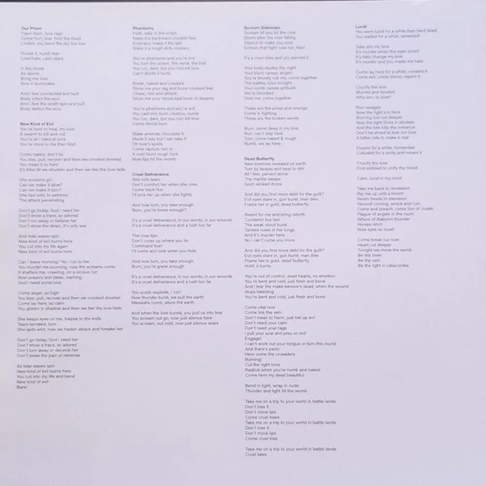 Our Prism, New Kind of Evil, Phantoms, Cruel Deliverance, Scream Sideways, Dead Butterfly, Lucid