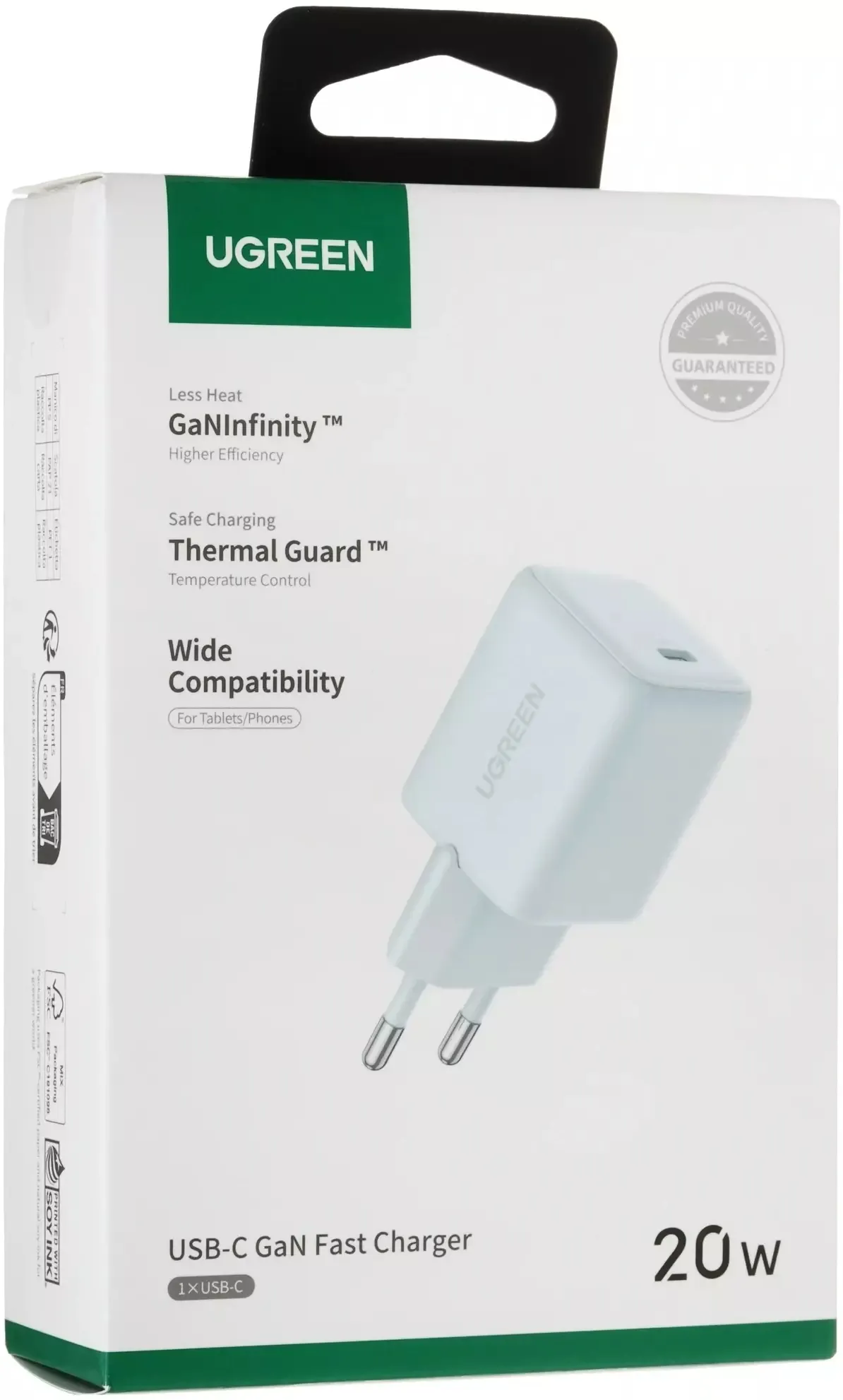 Зарядное устройство мощностью 20 Вт поддерживает протоколы быстрой зарядки PD 3.0, PD 2.0, QC 4.0, QC 3.0, QC 2.0, AFC и FCP. Устройство выполнено на основе нитрида галлия (GaN), что обеспечивает более стабильную зарядку, более эффективное охлаждение и меньший размер по сравнению с традиционными зарядными устройствами. Подходит для быстрой зарядки мобильных устройств, таких как смартфоны, планшеты, игровые приставки и т. д.