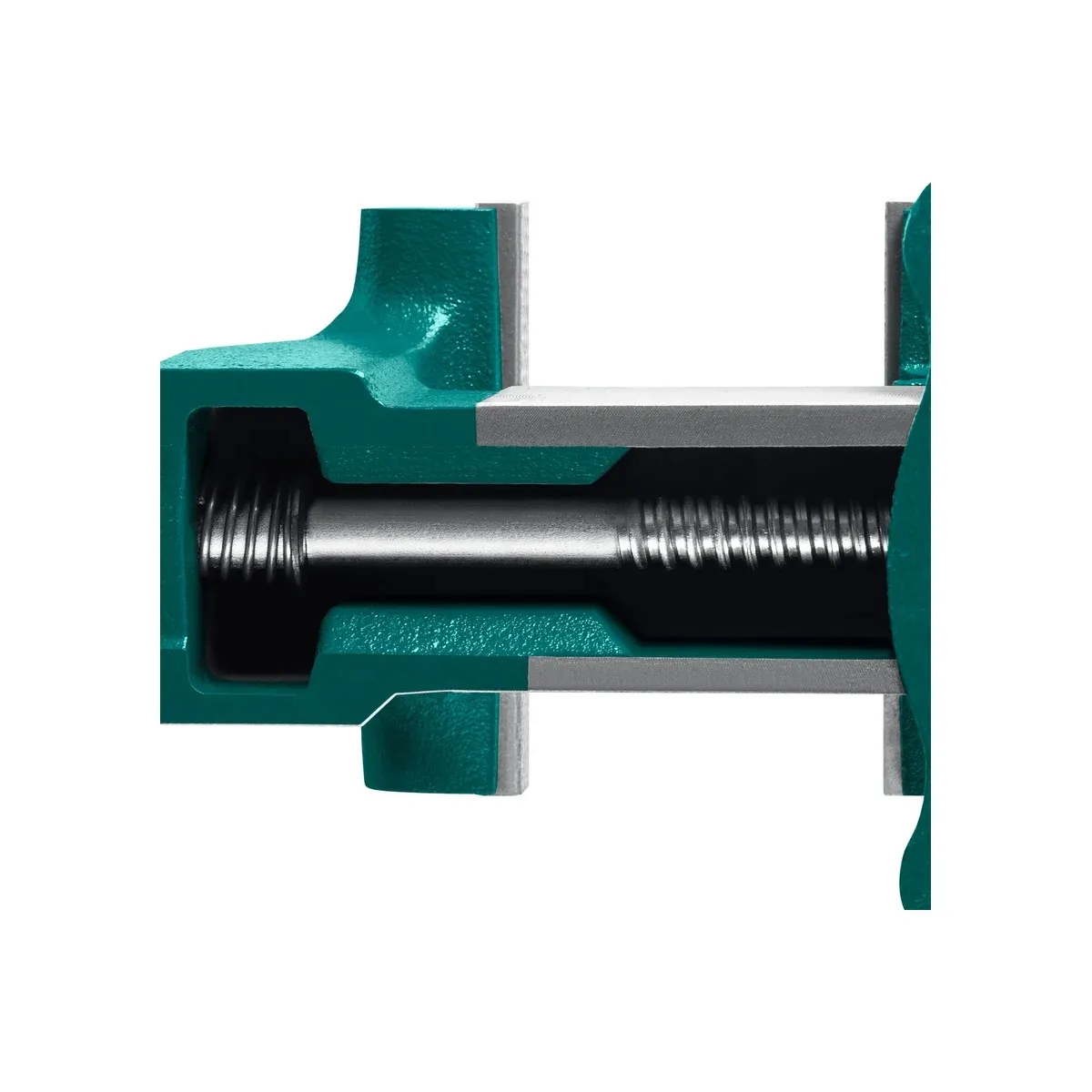 Слесарные тиски изготовлены из высококачественного чугуна с шаровидным графитом и соответствуют самым высоким техническим требованиям. Обеспечивают длительную и качественную работу. Встроенная наковальня и поворотное на 360? основание расширяют функционал использования инструмента. Прецизионная обработка всех рабочих граней подвижной части гарантирует высокую точность в работе.