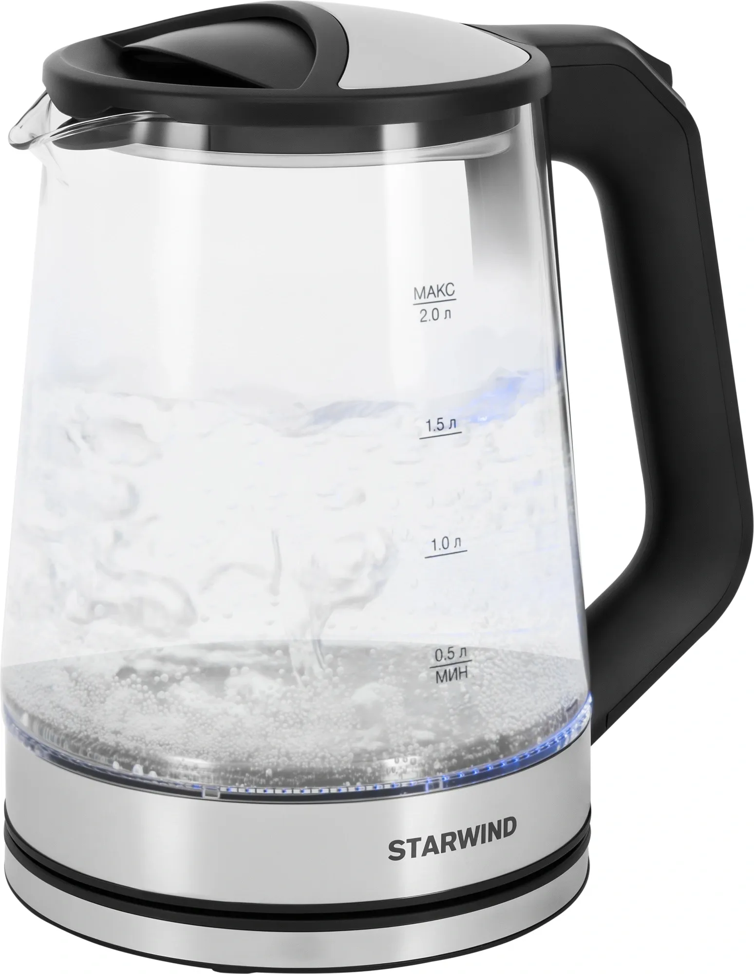 Представьте, как в вашей кухне рождается маленькое чудо — чайник Starwind SKG2112, который превращает обычное кипячение воды в захватывающее зрелище. Это не просто прибор для нагрева, а настоящий элемент современного интерьера, сочетающий в себе передовые технологии и элегантный дизайн. Его главная особенность — абсолютно прозрачный корпус из высокопрочного закаленного стекла, который позволяет наблюдать за магией закипания. Каждый пузырёк, поднимающийся со дна, каждая игра кипящей воды подсвечивается мягким голубым светом, создавая неповторимую, почти гипнотизирующую атмосферу. Это зрелище, которое завораживает и детей, и взрослых, делая утреннее чаепитие или вечерний кофе особым ритуалом. Благодаря мощному нагревательному элементу на 1800 Вт этот чайник справляется со своей задачей невероятно быстро. Всего за считанные минуты вы получите до двух литров кипятка, что идеально подходит для большой семьи или компании друзей, собравшейся на чай. Закрытая спираль, скрытая под дном, обеспечивает не только эффективный нагрев, но и простоту в уходе — накипь легко удаляется, а в стеклянной колбе не остается никаких посторонних запахов, что гарантирует чистый вкус вашего любимого напитка каждый раз. Безопасность стоит на первом месте: чайник автоматически отключается при закипании, а также немедленно прекращает работу, если его снять с подставки. Это делает его использование абсолютно безопасным даже в самой оживленной утренней суете. Эргономика и функциональность продуманы до мелочей. Удобная и прорезиненная ручка обеспечивает надежный и комфортный хват, защищая от ожогов. Четкий индикатор уровня воды, нанесенный на стекло, позволяет точно отмерить нужное количество, экономя время и электроэнергию. Яркая светодиодная индикация на подставке сразу сообщает о том, что процесс кипячения запущен. А когда чайник работает, встроенная подсветка мягко освещает воду, превращая прибор в небольшой светильник, который добавляет уюта и современности вашей кухне. Подставка с поворотным механизмом на 360 градусов позволяет легко и удобно установить чайник любой стороной, что особенно ценится при ограниченном пространстве. Starwind SKG2112 — это идеальный симбиоз формы и содержания. Он создан для тех, кто ценит не только скорость и эффективность, но и эстетическое удовольствие от использования бытовых приборов. Это выбор для людей, следящих за трендами и предпочитающих окружать себя красивыми и технологичными вещами. Он станет ярким акцентом на вашей кухне, предметом гордости и неизменным помощником в начале каждого дня. Его непревзойденный дизайн, надежность и инновационные функции делают процесс приготовления чая или кофе приятным, безопасным и по-настоящему волшебным. Это больше чем чайник — это ваш личный источник вдохновения и уюта.