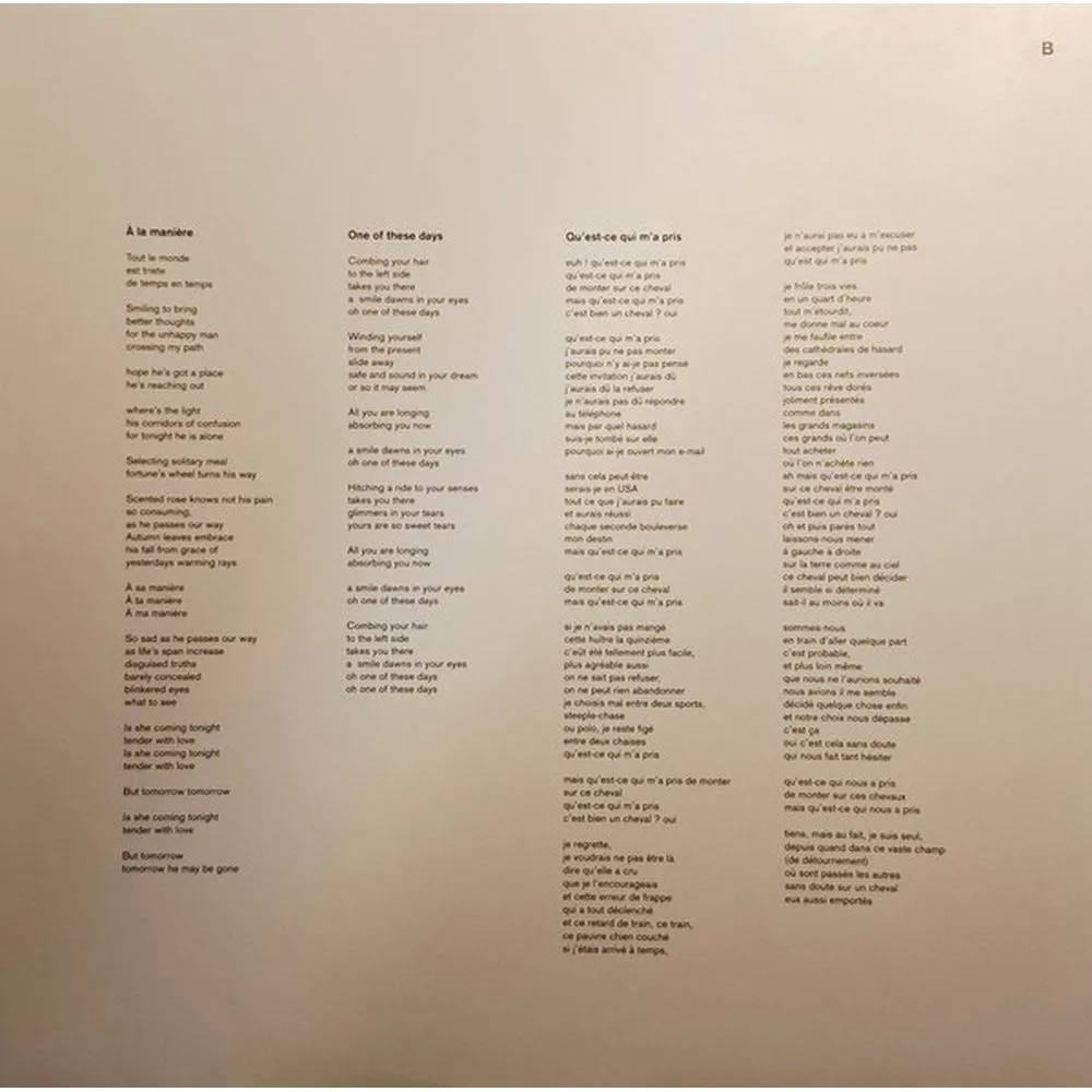 Лицензионное издание, выпущенное на виниле. В альбом вошли следующие композиции: Ich Will Dir Helfen, ? La Mani?re, Ondine, Aspiration, One Of These Days, Th?or?me, Mortel Battement / Nocturne, Organique, The Watcher, Qu'Est Ce Qui M'A Pris, XR 116/Messe Rouge, Untitled, Ondine (Alt Take), Piasong
