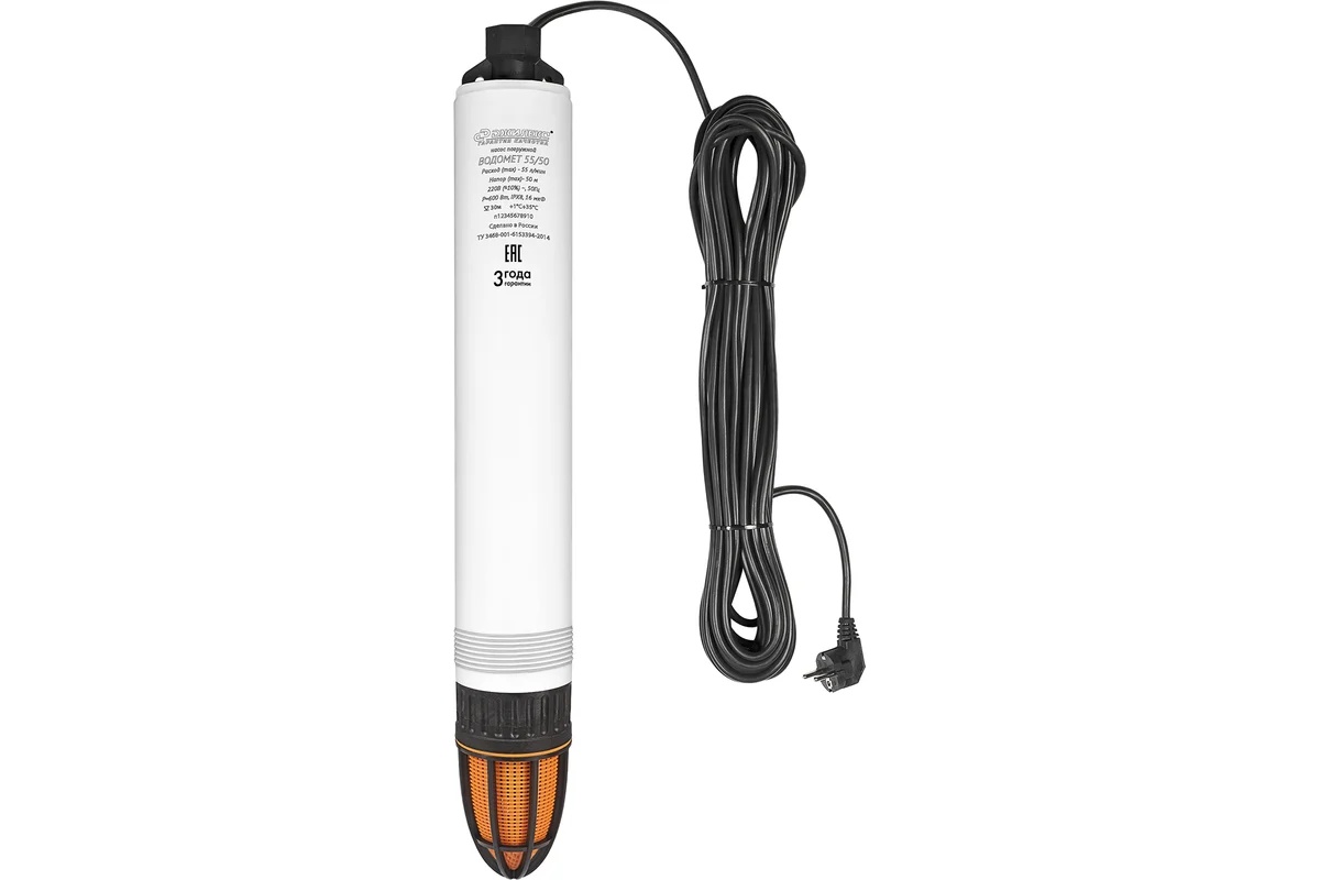 Погружной насос ВОДОМЕТ 55/50 предназначен для подачи воды из скважин с внутренним диаметром от 100 мм и более, а также колодцев, резервуаров и открытых водоемов для системы водоснабжения дома, орошения сада и огорода. Насос предназначен для подачи чистой воды из скважин, колодцев, открытых водоемов и может быть использован для полива, автоматизированного водоснабжения, для набора емкостей.