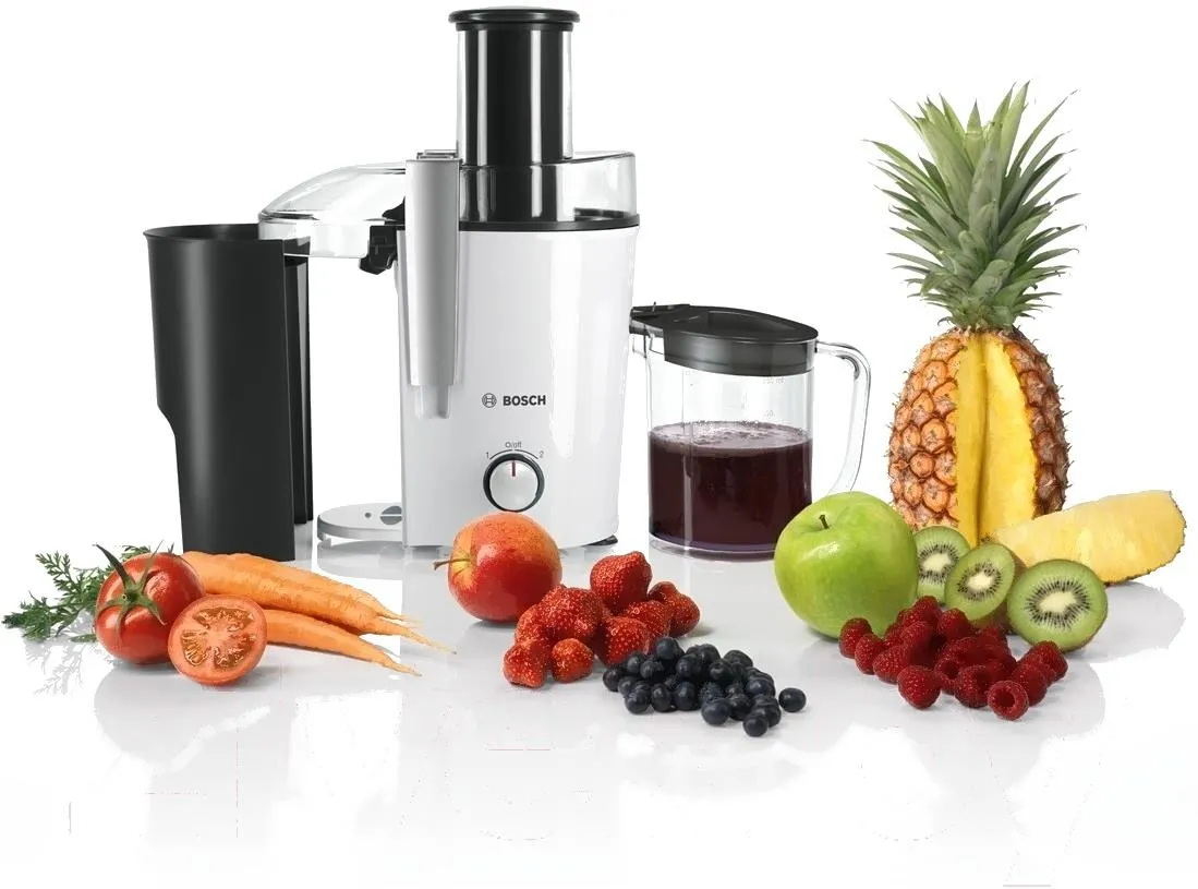 Весь сок, который для Вас заботливо изготавливает соковыжималка Bosch MES25A0, собирается в отдельно стоящую вместительную емкость для сока, объемом 1250 мл. С такой емкостью Вы за один раз можете приготовить вкусный и полезный напиток для большой компании людей. Вам не придется прерывать процесс приготовления и тратить время на переливания жидкости из одного контейнера в другой. Кроме того наличие такой емкости во много раз облегчает очищение и уход за соковыжималкой.
