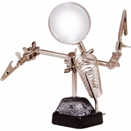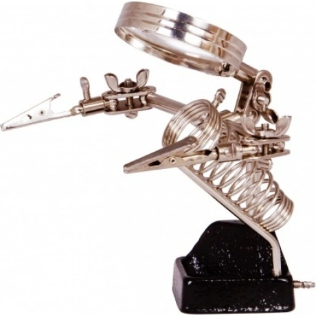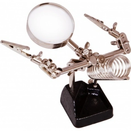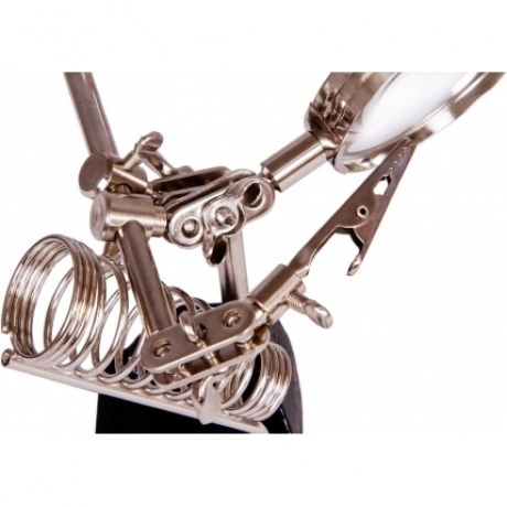 Лупа на штативе Levenhuk Zeno Refit ZF11 – оптический инструмент с держателями, который отлично подойдет для ювелирной, часовой или ремонтной мастерской. В домашних условиях лупу можно использовать для рукоделия и творчества. Благодаря наличию пары держателей лупа позволяет оставить обе руки свободными для работы с небольшими деталями – сборки, разборки, покраски, пайки и других манипуляций. Фиксация предметов производится с помощью зажимов-прищепок. Линза штативной лупы Levenhuk Zeno Refit ZF11 дает 4-кратное увеличение. Она выполнена из оптического пластика, а оправа и корпус – из металла. Еще одно преимущество лупы – возможность перемещать линзу по горизонтали и наклонять под разными углами. В конструкции предусмотрен отдельный держатель для паяльника. В устойчивом основании лупы расположен лоток для размещения мелких деталей и инструментов.