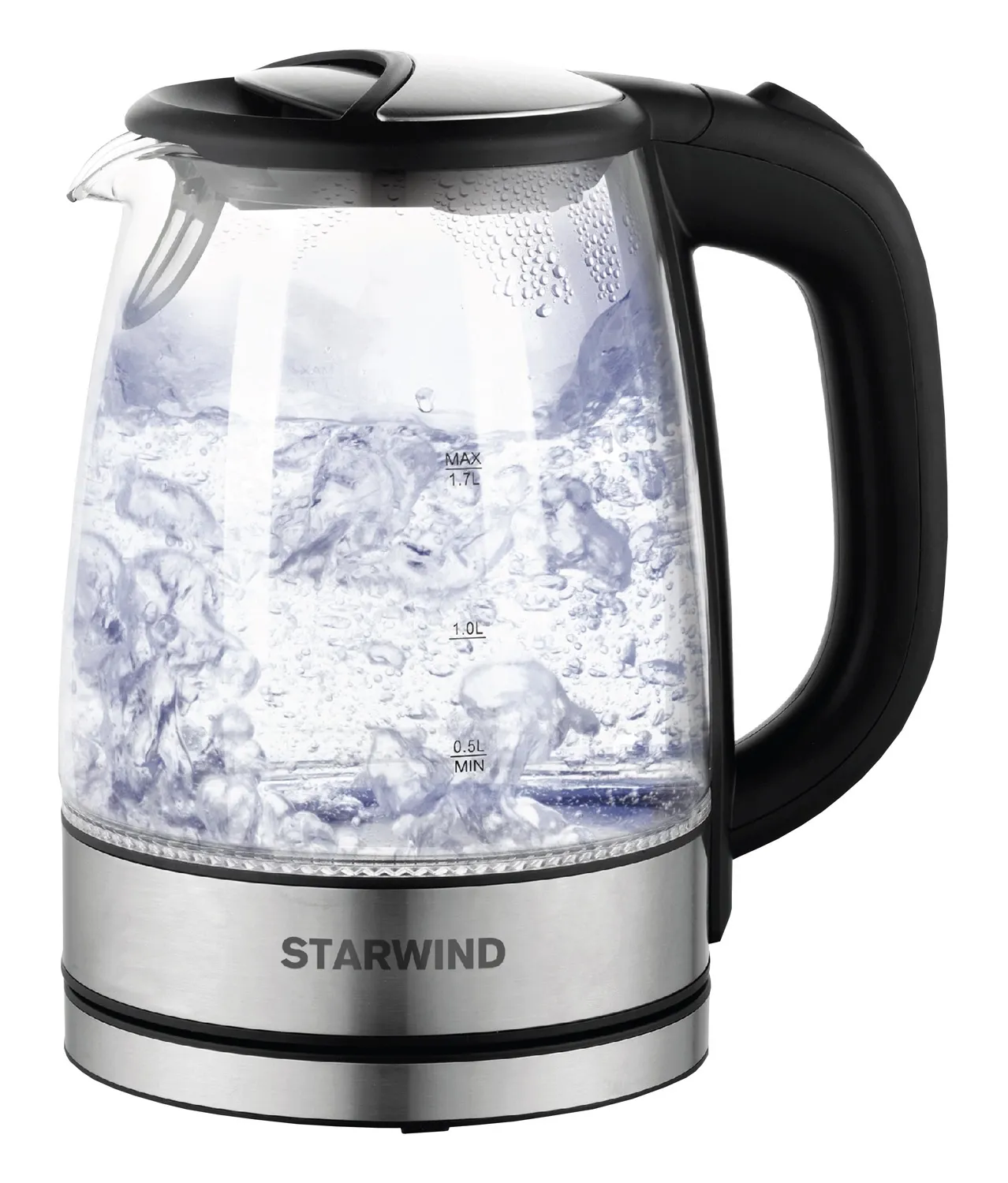 Описание товара Чайник электрический Starwind SKG5210 черный/серебристый