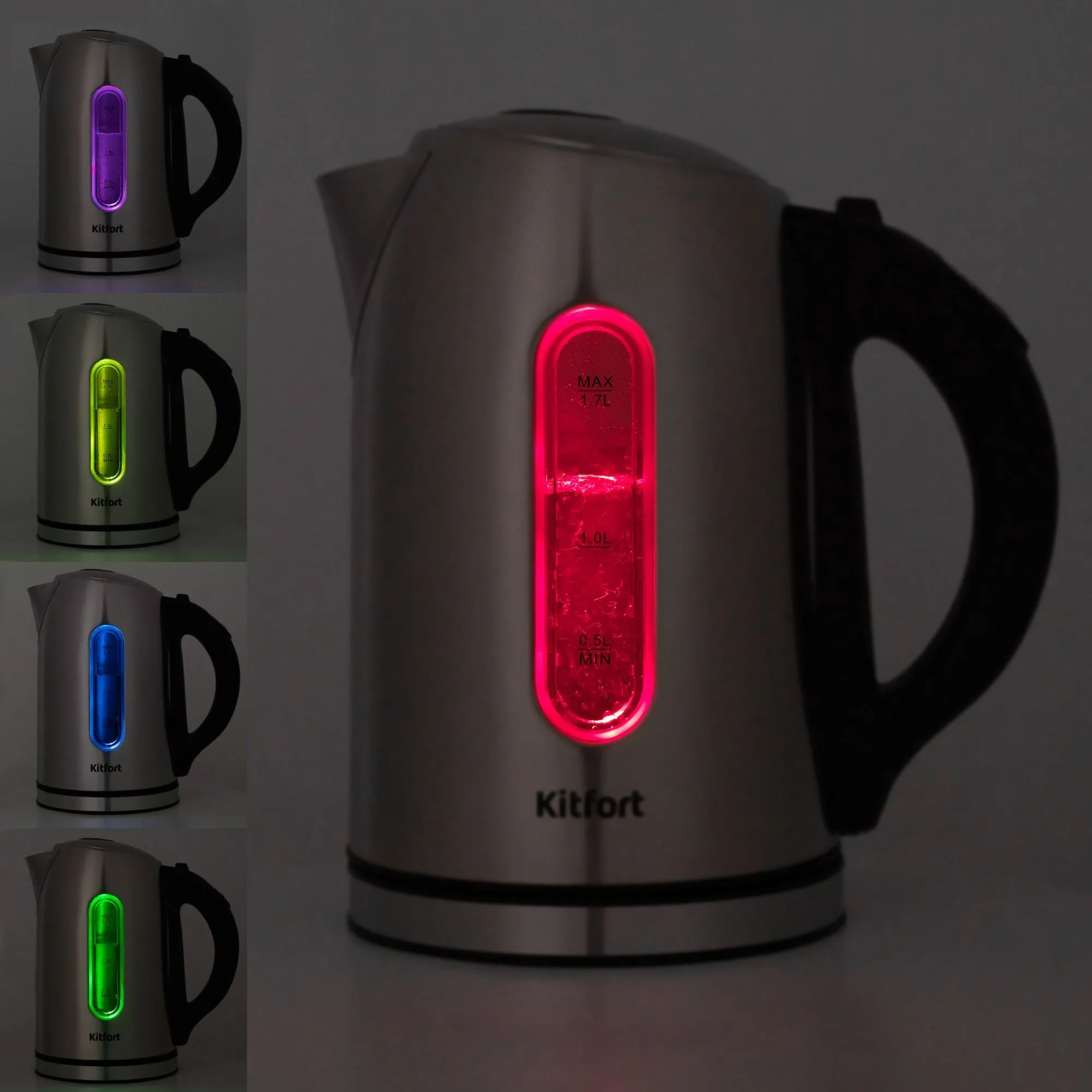 Чайник Kitfort КТ-6106 выполнен в стильном металлическом корпусе. Ручка чайника пластиковая, не нагревается и удобно лежит в руке. Для вашего удобства на ручке расположена панель управления чайником. В носике чайника расположен съёмный фильтр, который задерживает частички накипи и предотвращает их попадание в чашку. Чайник оснащён терморегулятором и может нагреть воду от 40 до 100 °С, что очень удобно при заваривании различных сортов чая, приготовлении кофе и подогрева детского питания. Чайник также оснащён функцией поддержания температуры до 2 часов. При включении чайника загорается подсветка, которая является индикатором работы и одновременно художественно подсвечивает воду разными цветами.