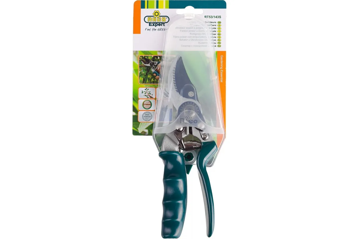 Секатор RACO 4206-53/143S представляет собой профессиональный садовый инструмент, предназначенный для обрезки веток деревьев и кустарников. Лезвия изготовлены из высокоуглеродистой стали, закалены и заточены, имеют антикоррозионное покрытие RACO-Hitekflon®. Данный инструмент оснащен эргономичными алюминиевыми рукоятками, одна из которых способна поворачиваться на 90 градусов в каждую сторону.