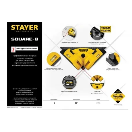 Описание товара Уровень лазерный Stayer Square-8 34928