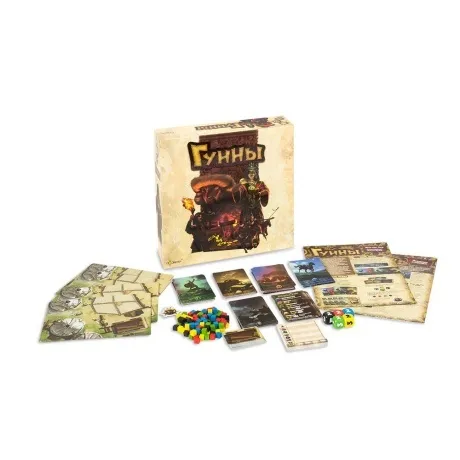 "Гунны" - стратегическая настольная игра, где вам предстоит совершать набеги, собирать под свои знамена наемников, вооружаться и копить сокровища.