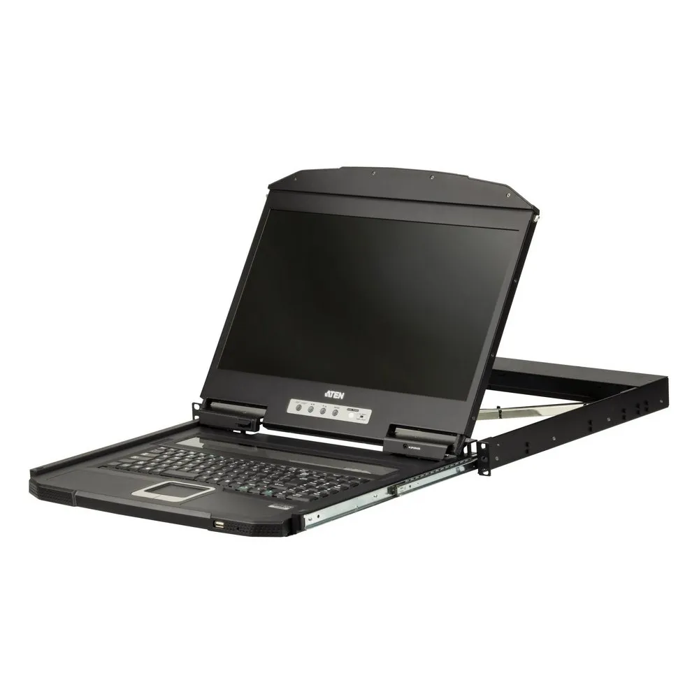 Коммутатор Aten CL3700NW-ATA-RG – KVM Консоль ATEN CL3700NW (CL3700) укороченной глубины монтажа с направляющими Single Rail имеет 18,5 дюймовый широкоэкранный ЖК-дисплей Full HD разрешения (1920x1080) со встроенной клавиатурой и тачпадом. Внешняя консоль поддерживает 1920 x 1200.