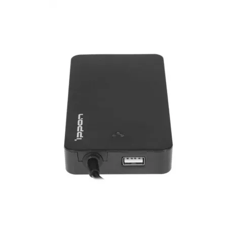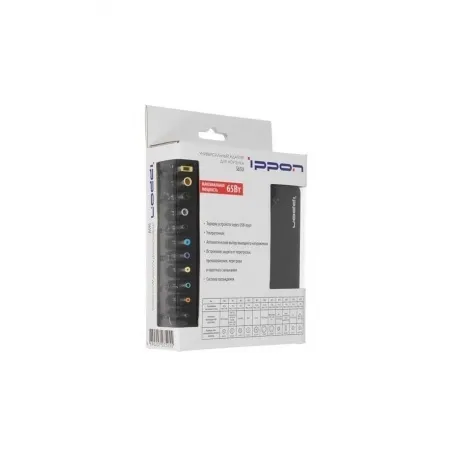 Устройство представляет собой универсальный импульсный адаптер питания для ноутбуков с максимальной выходной мощностью 65Вт. Выходное напряжение постоянного тока на выходе адаптера питания может принимать одно из следующих значений: 18,5В, 19В, 19,5В, 20В. Выбор выходного напряжения осуществляется с помощью подсоединения одного из 11-и выходных разъемов, входящих в комплект поставки. Штекеры также отличаются размерами, благодаря этому достигается совместимость с большим количеством моделей мобильных компьютеров.