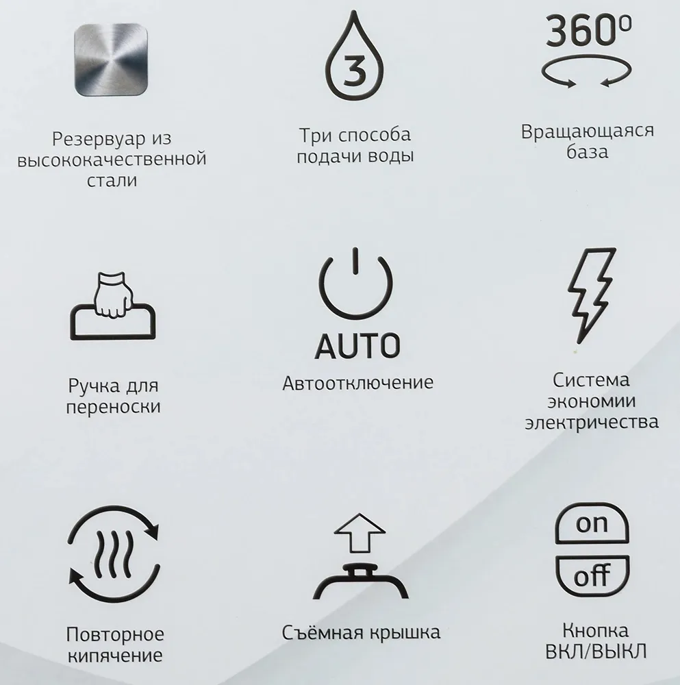 Объем 5 л; мощность 750 Вт; режим подачи воды: нажатием чашкой, помповый, электрический; тип нагревательного элемента закрытая спираль; материал корпуса металл/пластик.