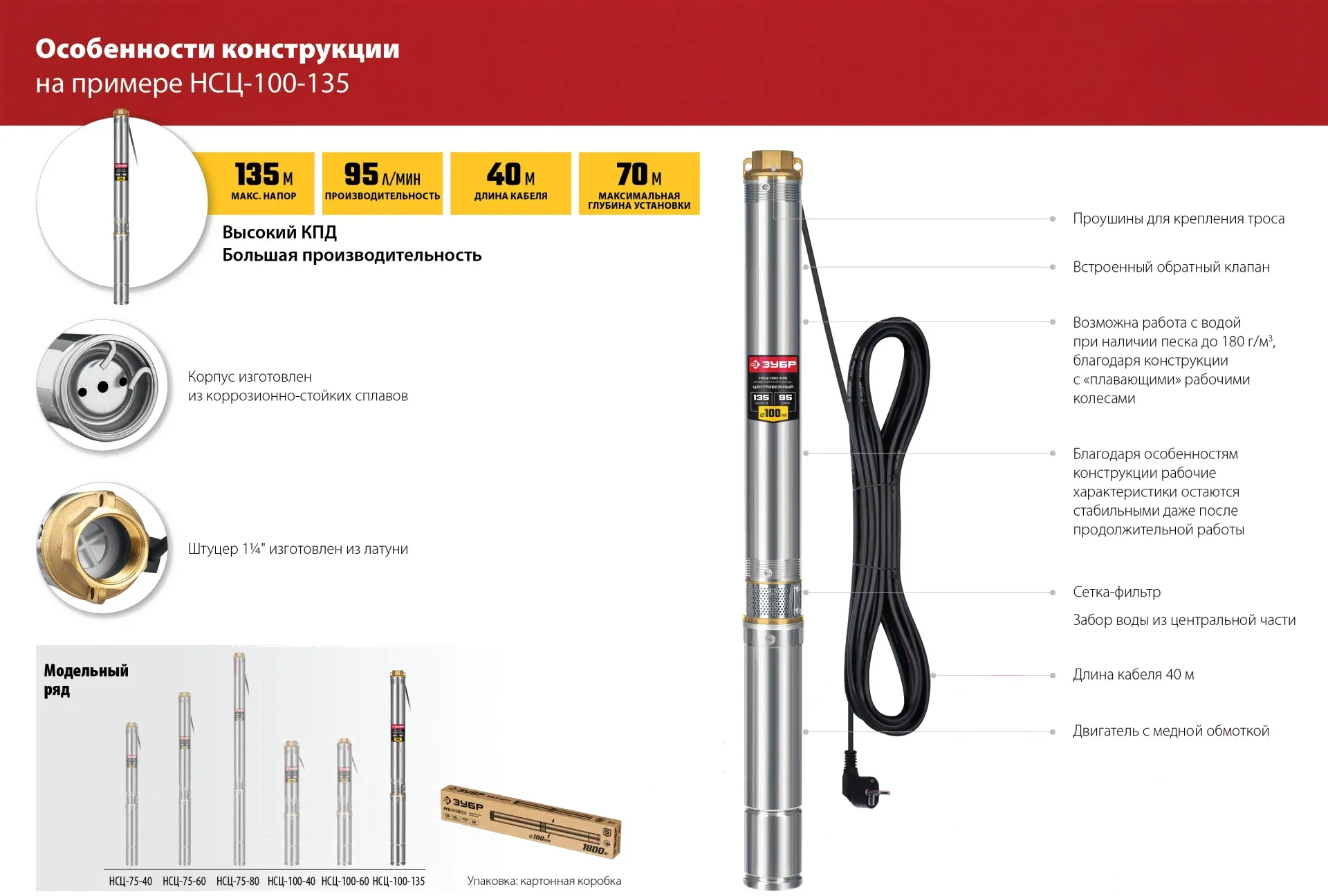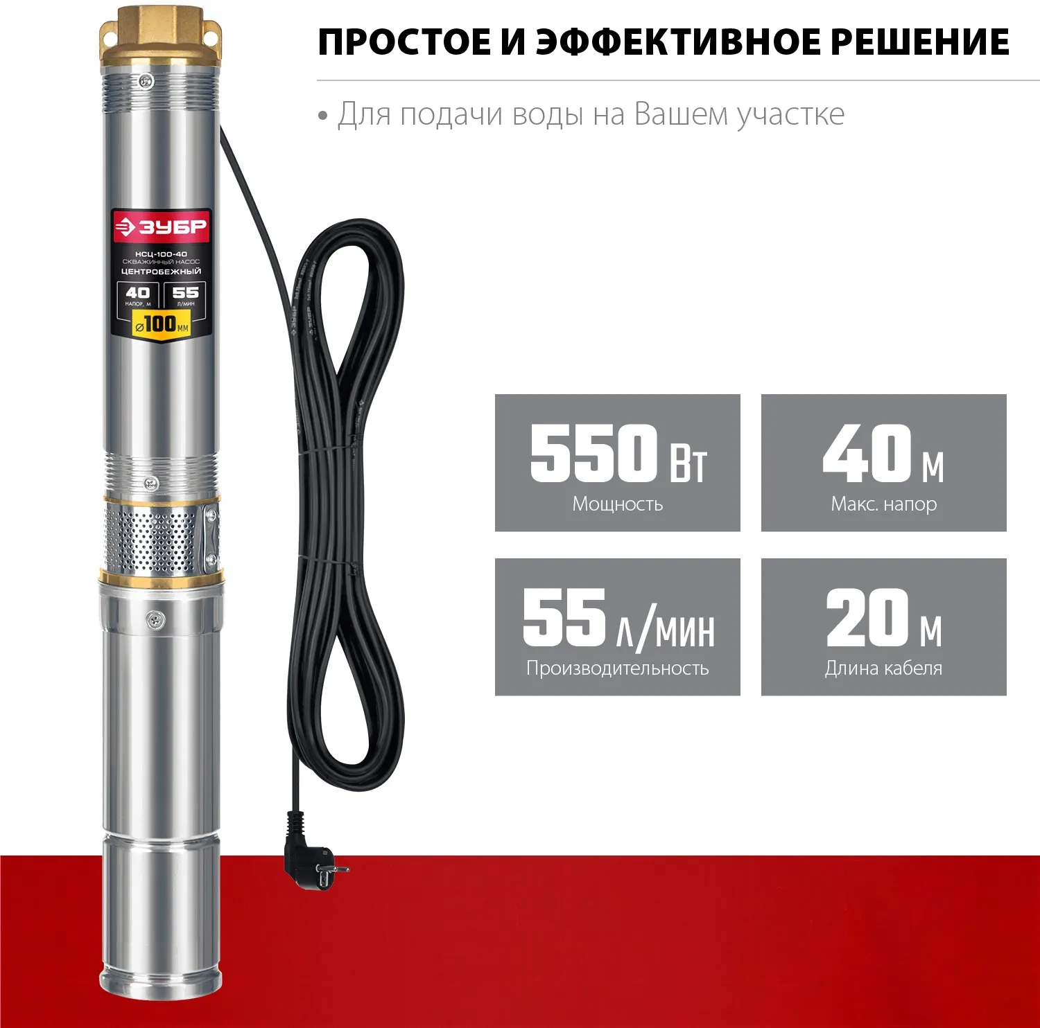 Описание товара Скважинный насос центробежный ЗУБР, 40 м напор