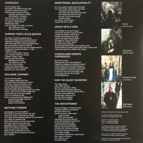 Darkthrone - Soulside Journey (0801056838919) виниловая пластинка - характеристики, описание товара, фото и цены представлены на карточке товара. Этот товар вы можете купить по цене 4123 руб., позвонив по телефону 8(812)426-98-99 в Калининграде, или оформив покупку через корзину.