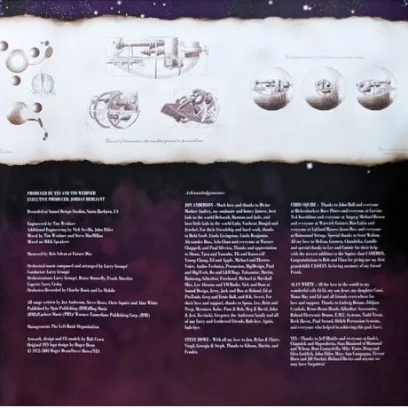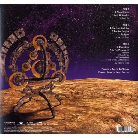 Лимитированное переиздание студийного альбома 2001 рок-группы Yes. Сторона D содержит гравировку. Британская рок-группа Yes была основана в 1968 году в Лондоне и в основном играет в жанрах прогрессив, симфони, арт и психодел-рок. За время своего существования коллектив постоянно менялся, но это не помешало группе достичь вершины славы и завоевать множество поклонников. Самыми популярными стали пластинки "Tales from Topographic Oceans" и "Going for the One", которые заняли первые позиции британского чарта.
