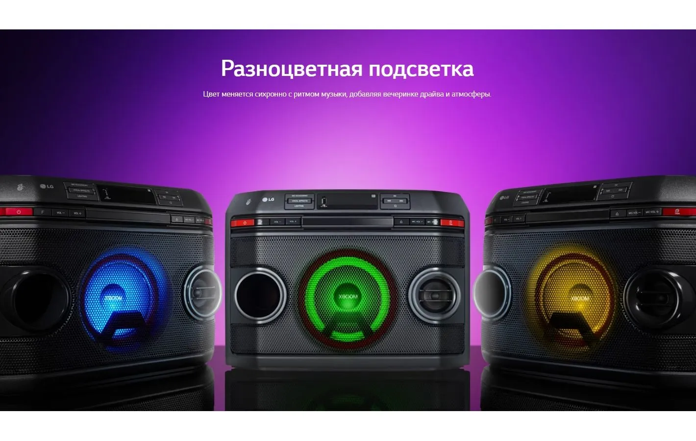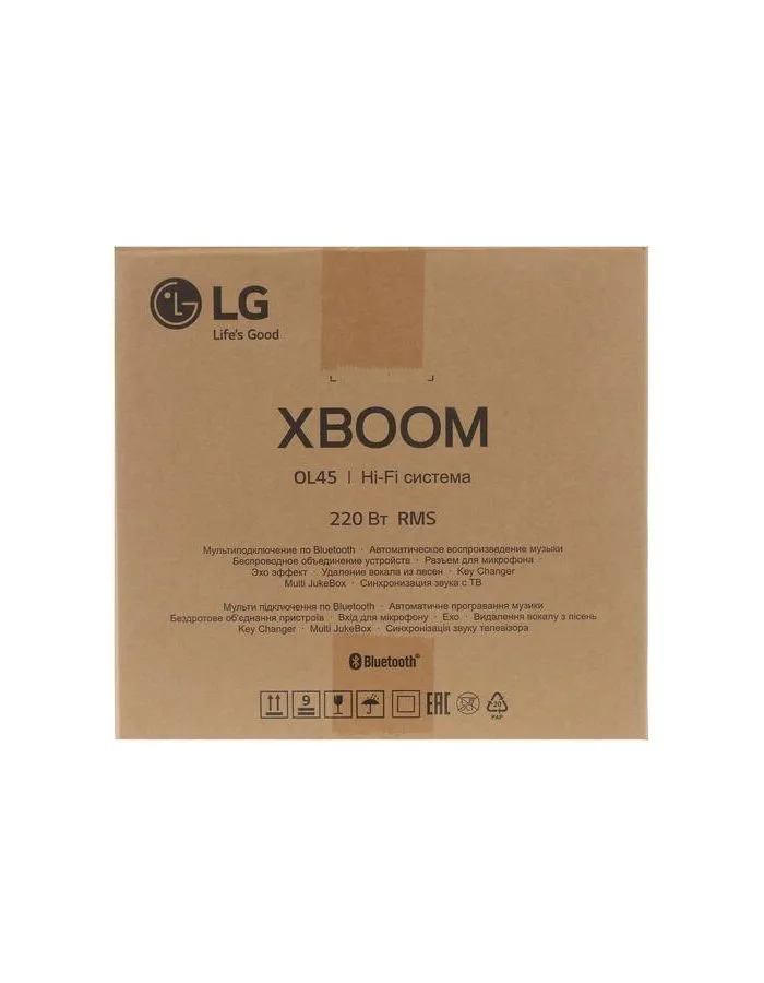 Домашняя аудиосистема LG XBOOM OL45 формата All-in-One («Все-в-одном») станет вашим персональным организатором вечеринок. С музыкой делать уборку веселее, а с караоке и разноцветной LED-подсветкой получится устроить дискотеку. Мощность звучания модели достигает 220 Вт – с таким звуком можно устроить даже самую громкую вечеринку с басами в загородном доме. При необходимости домашнюю аудиосистему LG XBOOM OL45 можно объединить со смартфоном, планшетом или телевизором, чтобы воспроизвести фильмы или любимые плейлисты.