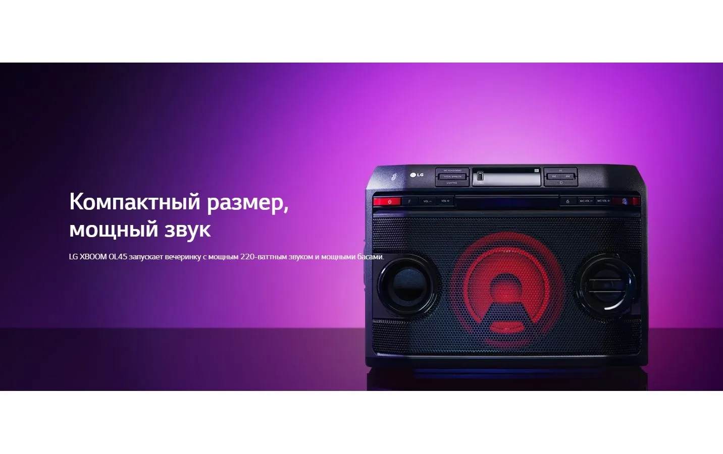 Минисистема LG XBOOM OL45 черный 220Вт - характеристики, описание товара, фото и цены представлены на карточке товара. Этот товар вы можете купить по цене 23792 руб., позвонив по телефону 8(812)426-98-99 в Калининграде, или оформив покупку через корзину.