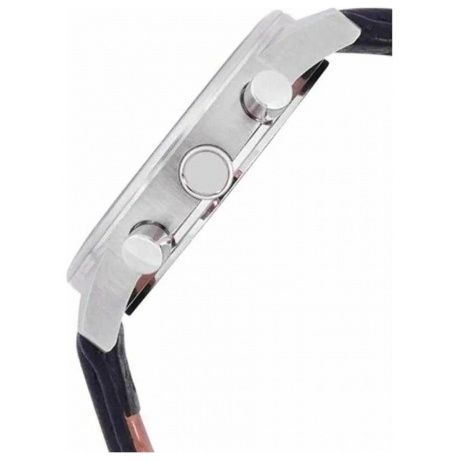 Кварцевые часы с хронографом. Малые циферблаты на 60 секунд, 30 минут и 110 сек. Тахиметрическая шкала для определения средней скорости движения. Корпус выполнен из полированной нержавеющей стали. Циферблат черного цвета с люминесцентными стрелками и метками. Закаленное минеральное стекло с сапфировым напылением, устойчивое к возникновению царапин. Черный ремешок из натуральной кожи с пряжкой из нержавеющей стали. Диаметр корпуса 41 мм. Индикация даты. Водонепроницаемость WR 100. Точность хода не хуже -10 +15 секунд в месяц.