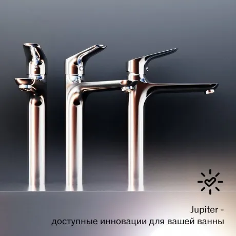 Минималистичный дизайн коллекции Jupiter находит отражение в простых геометрических формах и плавных линиях. Самая наполненная коллекция поражает своей эргономичностью и разнообразием функций. Новый формат: смеситель с высоким изливом идеально впишется в современный интерьер ванной комнаты с глубокой чашей, благодаря обширной зоне движения ручки управлять температурой воды будет легко и просто. Идеальное управление: керамический картридж Light Flow обеспечивает плавное управление ручкой смесителя и оптимальную регулировку температуры и мощности потока