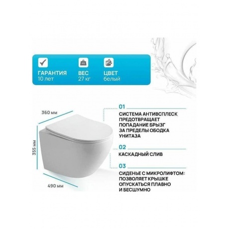 • Унитаз OLIVE'S подвесной, белый, сиденье дюропласт PLAZA (PL30116DP) - фото 2