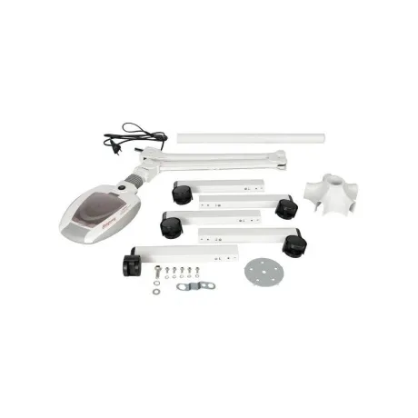 Лупа-лампа Микромед Medic 05 – осветительный оптический прибор, который состоит из кронштейна-пантографа, увеличительной линзы и источника света. В комплекте с Medic 05 также идет штатив с колесиками для напольной установки и удобного перемещения прибора. Данная комплектация позволит использовать прибор в качестве источника равномерного освещения с возможностью рассматривать мелкие объекты под увеличением.