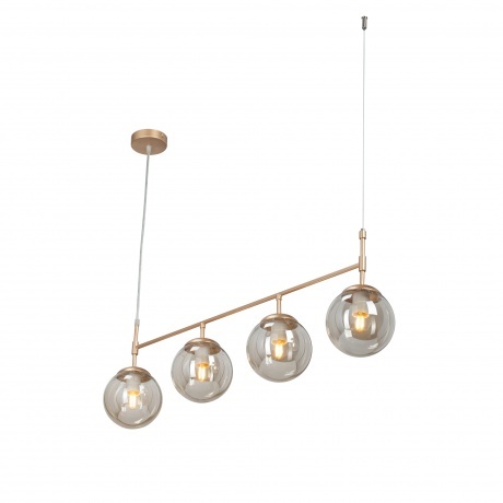 подвесная люстра vitaluce v46920-8/4s с четырьмя лампами e27 максимальной мощностью 40 вт, выполнена в стиле модерн с металлическим основанием и стеклянными светло-коричневыми плафонами, подходит для освещения площади до 12 м2, высота 121 см, вес 2.2 кг
