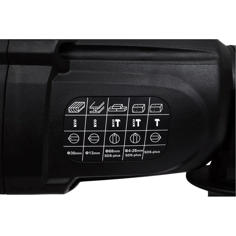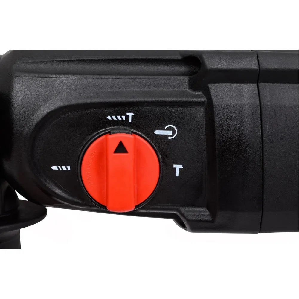 Перфоратор KEYANG PHD-283B поможет быстрее закончить монтажные работы. Выполняет сверление, в том числе с ударом, и долбление. Мощность составляет 800 Вт, сила удара – 3,2 Дж. Максимальная скорость вращения 1 250 об/мин позволит быстро просверлить отверстия под дюбели и анкеры. Сделать штробы для установки подрозетников и распределительных коробок поможет высокая скорость ударов – до 4 000 в минуту.