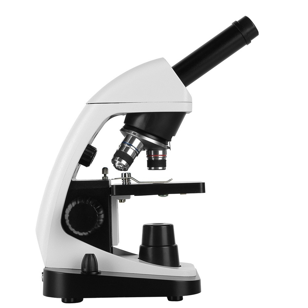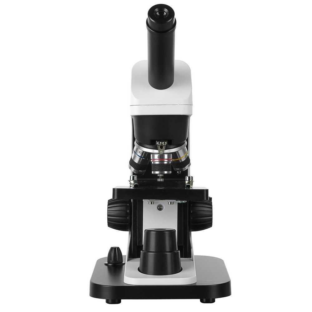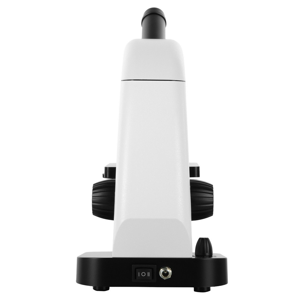 Монокулярный учебный биологический микроскоп для исследований в проходящем и отраженном свете. Увеличение 40х – 1600х. Объективы с ахроматической коррекцией. Револьверное устройство на 3 объектива. Механизм тонкой фокусировки. Два осветителя на светодиодах.