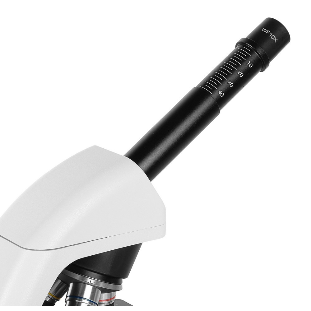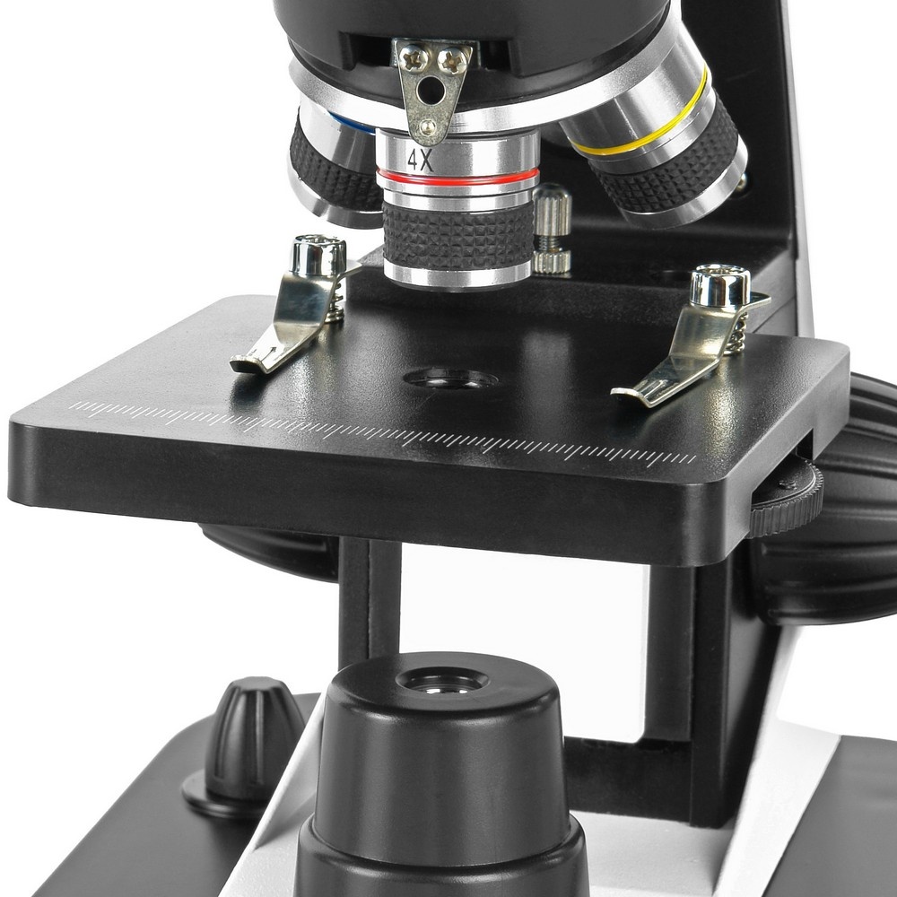 В комплекте микроскопа окуляры широкого поля WF10х, WF16х и WF20х с ними увеличение микроскопа составляет 400х и 800х, а при использовании линзы Барлоу и объектива 40х до 1600х.