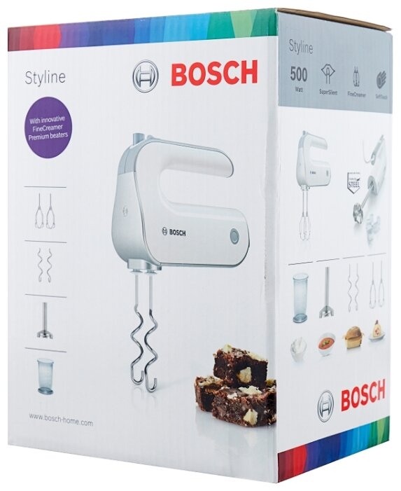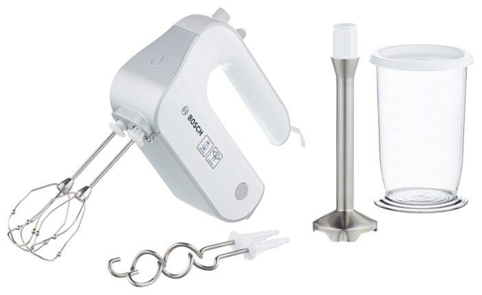 Bosch MFQ4070 – стильный ручной миксер, оборудованный инновационными венчиками для взбивания яичных белков и сливок. Также устройство можно использовать для замешивания теста, к нему легко подключается блендер. Мягкое противоскользящее покрытие SoftTouch и ручка эргономичной формы делают работу с миксером особенно удобной и безопасной.
