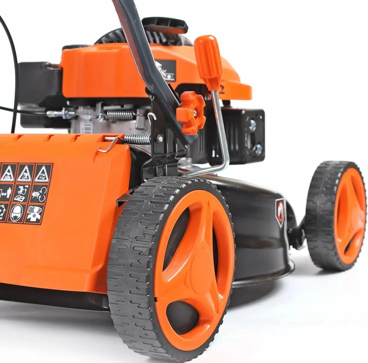 Бензиновая газонокосилка Patriot PT 42LS является самоходной моделью, поэтому ее использование для выкашивания озелененных территорий площадью до 1200 кв. метров не потребует от вас значительных усилий. Она выкашивает за один проход полосу шириной 410 мм и поддерживает регулировку высоты скашивания от 25 мм до 75 мм. Скошенная трава накапливается в съемном травосборнике объемом 40 литров. Травосборник изготавливается из ткани и пластика, чтобы вам не составило труда освободить его при заполнении.
