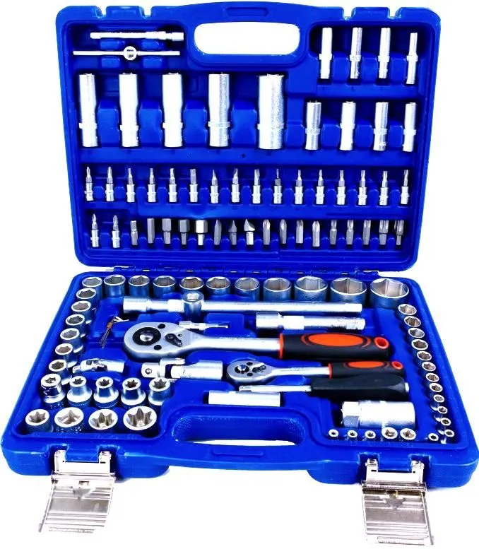 Комплектация: Привод 1/4. Трещотка 1/4 24 зубцов. Головки 6 граней— 13 шт.: 4-4,5-5-5,5-6-7-8-9-10-11-12-13-14. Головки со вставкой TORX — 7 шт.: Т8-Т10-Т15-Т20-Т25-Т27-Т30. Удлинители 50 мм— 1шт., 7 5мм — 1 шт. Головки удлиненные 6 граней -8 шт.: 6-7-8-9-10-11-12-13 мм. Отверточная рукоятка — 1 шт. Вороток 115 мм — 1 шт. Головки со вставкой HEX — 4 шт.: 3-4-5-6. Головки со вставкой SLOTTED-3шт.: 4-5.5-6.5. Головки со вставкой PHILLIPS-2 шт.: PH 1-2. Головки со вставкой POZI -2 шт: PZ 1-2. Карданный шарнир — 1 шт. Головки Е-типа — 5шт: Е4-Е5-Е6-Е7-Е8. Ключ шестигранный Г-образный— 3 шт.: 1.5-2-2.5мм. Привод 1/2. Трещотка 1/2 24 зубцов -1 шт. Головки 6 граней -17 шт.: 10-11-12-13-14-15-16-17-18-19-20-21-22-24-27-30-32. Удлинители 120 мм— 1шт., 250 мм — 1шт. Биты TORX — 5шт.: Т40-Т45-Т50-Т55-Т60. Головки удлиненные 6 граней -5шт.: 14-15-17-19 мм. Биты шестигранные (HEX)-5шт: 7— 8-10-12-14. Биты шлицевые (SLOTTED) — 3шт.: 8-10-12. Биты PHILLIPS-2шт: PH 3-4. Биты POZI -2шт: PZ 3-4. Головки свечные 16 мм -1шт., 21 мм -1шт. Карданный шарнир — 1шт. Держатель бит 1/2 — 1 шт. Адаптер для воротка 3/8 * 1/2 — 1шт. Головки Е-типа — 8 шт. Е10-Е11-Е12-Е14-Е16-Е18-Е20-Е24. Кейс.