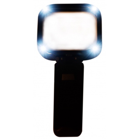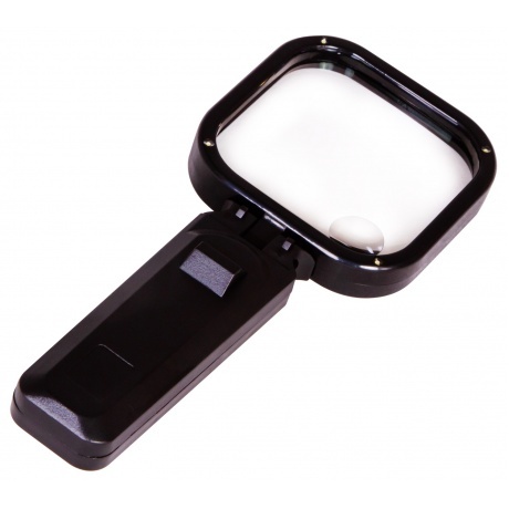 Levenhuk Zeno Read ZR10 – это лупа на ручке, снабженная бифокальной линзой. Большая квадратная линза дает увеличение в 2 крата, малая линза круглой формы приближает в 6 раз. Угол наклона основной линзы можно регулировать. Есть встроенная светодиодная подсветка, позволяющая использовать лупу даже в полной темноте. Питание – стандартные батарейки. Лупа прекрасно подходит для работы с мелким текстом, детального рассматривания фотографий, карт, чертежей, марок, денежных знаков