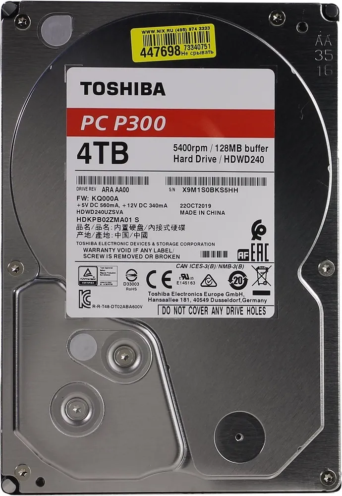 Описание товара Жесткий диск Toshiba P300 4Tb (HDWD240UZSVA/HDKPB02ZMA01S)