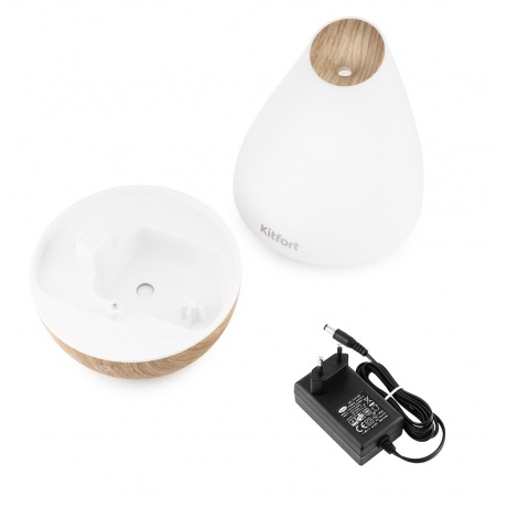 Ультразвуковой увлажнитель - ароматизатор воздуха Kitfort KT-2805 увлажняет воздух в помещении, создавая хороший микроклимат для проживания людей. Может использоваться в помещениях и квартирах, площадь которых не превышает 15–20 м?. Залейте чистую холодную воду в резервуар, добавьте прямо в основание увлажнителя 10-15 капель любимого эфирного масла на водной основе. И наслаждайтесь любимым ароматом! Увлажнитель прост в использовании - с помощью кнопок на передней панели можно установить интенсивность тумана, включить или выключить подсветку в корпусе. По мере испарения воды увлажнитель автоматически отключится. Корпус увлажнителя – ароматизатора подсвечивается изнутри разными цветами, его можно использовать в ночное время в качестве ночника. При помощи спокойных приятных цветов создаст в доме уютную атмосферу. Легко разбирается и быстро моется! Имеет съёмный блок питания, поэтому хранить его будет ещё проще и удобнее!