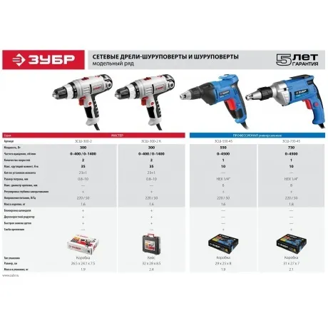 Описание товара Шуруповерт сетевой Зубр ЗСШ-730-45